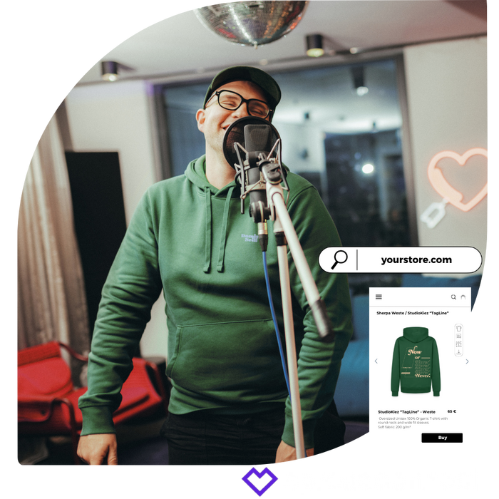 Nichts im Voraus. Du kannst deinen Merch erstellen und verkaufen, ohne Startkosten. Basispreise fallen nur an, wenn ein Fan tatsächlich bestellt.