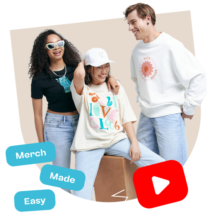 Du musst nicht warten, bis du YouTubes Kriterien erfüllst. Starte schon jetzt deinen eigenen Spreadshop. Mit dem Verkauf von Merch stärkst du deine Brand, deine Community und verdienst auch noch Geld dabei.