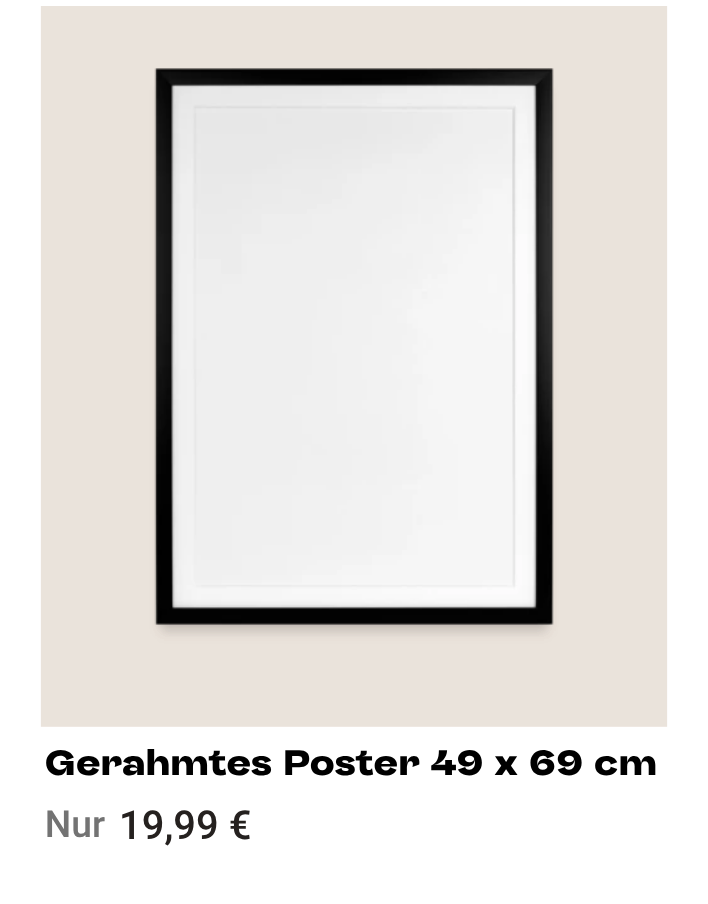 Viele Käufer möchten Poster nicht nur bestellen, sondern direkt aufhängen. Genau hier entsteht zusätzliches Potenzial: Mit passenden Rahmen machst du dein Angebot attraktiver und erhöhst gleichzeitig den Warenkorbwert.